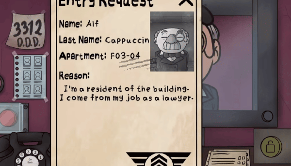 3、进入游戏如图,玩家需根据邻居出示的证件信息辨别其中的伪人;