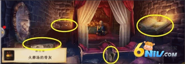 2、在右侧的桌面处,可以拿到“毒药配方”“油灯”以及“钥匙”。