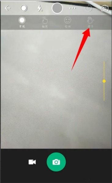 2、在打开的拍摄页面,点击左上角的圈点图标。