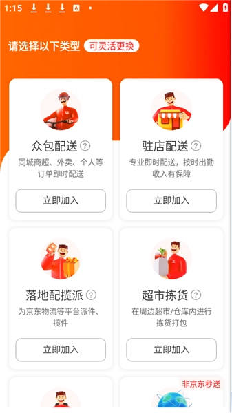 1、在本站达达秒送骑士,打开软件并注册,选择自己的兼职工作;