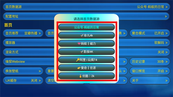 3、数据源颇为丰富,大家不妨逐步尝试。要是碰到某些电视无法播放的情况,也能来此处更换数据源。