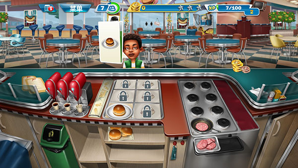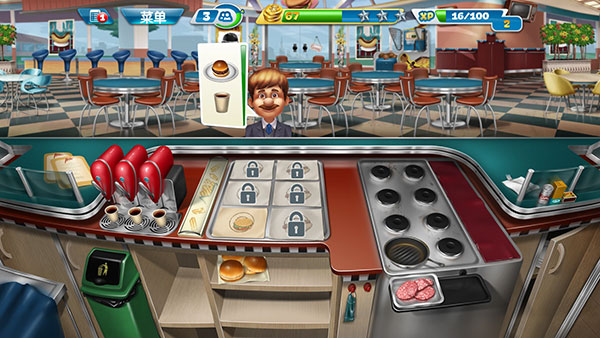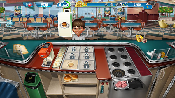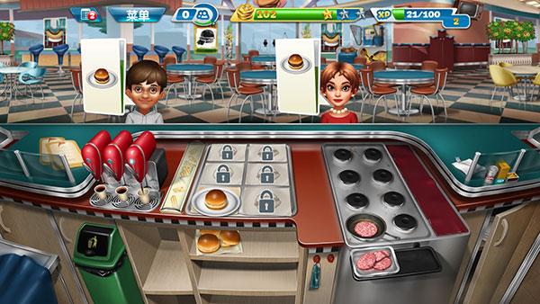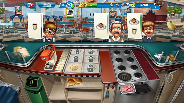 随着玩家不断解锁关卡,会得到更多新的食材和道具,也会越来越手忙脚乱。这里有一个小技巧分享给大家,很多客人会选择点套餐,而套餐中只要上了一个食物就可以增加顾客的等待时间,因此可以常备一些饮品,用于增加顾客的等待时间。