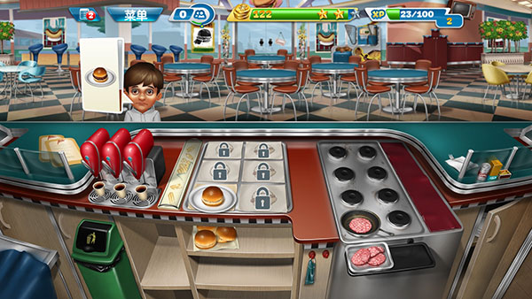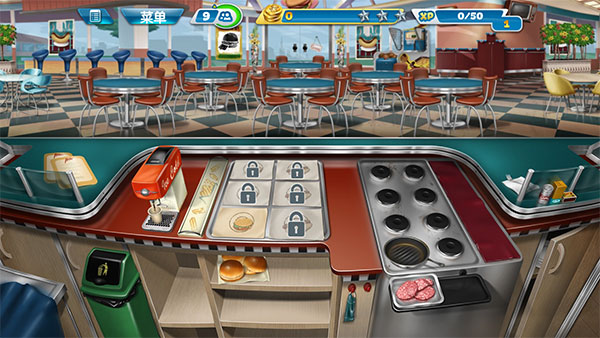 市面上的烹饪实操游戏很多,但是烹饪发烧友是其中较为成功的一款,一方面是因为其画面比较真实立体,另一方面是其关卡设置合理而且玩家的可控性强。玩家在该游戏中经营着一家快餐店,通过制作不同的食物来满足顾客的需求,随着关卡的不断解锁,玩家的任务也越来越重。