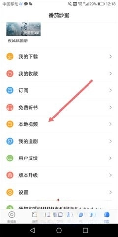 1、打开百搜视频,进入【我的】页面,点击【本地视频】(见下图红色箭头所指区域)。