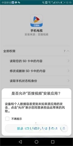 3、当您点击播放按钮,系统会弹出提示,引导您安装【手机电视】软件。待安装完成,就能顺利观看电视直播。