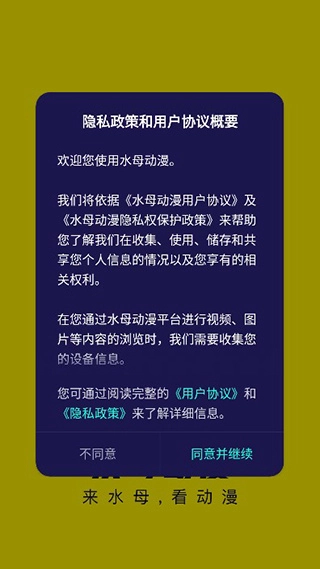 1、首次使用水母动漫时,需先同意隐私政策和用户协议。