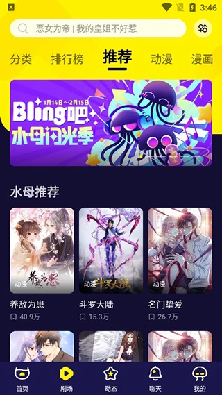 2、进入主界面后,用户会看到大量推荐的动漫内容。