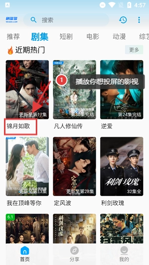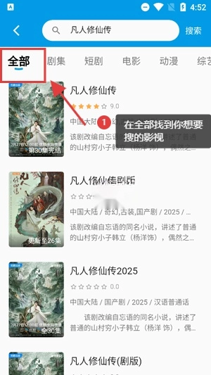 在搜索结果界面查看全部的搜索内容,找到你想要搜的影视剧集。