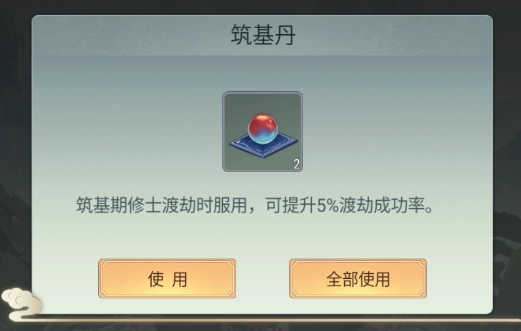 5、灵气外溢时需要渡劫,使用丹药可以提高渡劫的成功率,渡劫失败会扣除修为点。