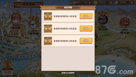 冒险关卡可以在闯关地图左下角领取通关星级奖励