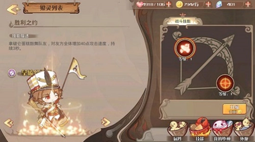 推荐拿破仑蛋糕开局是因为他的1技能【胜利之约】,为全体增加40攻速(1级),非常实用的群体buff,团队收益大,战斗实测触发概率也不低~ 同时2技能【狙击鹰眼】还是个不错群体aoe!