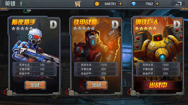 在游戏里,英雄是参战要素之一,当前游戏中包含暗夜猎手、铁甲战警以及钢铁巨人这几位英雄。