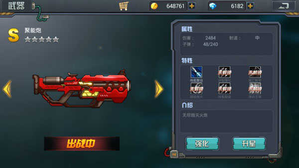 另外枪械和近战武器还能进行强化和升星,从而也能大幅度提升战力。
