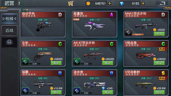 在游戏里,装备主要划分为枪械与近战这两大类别,同时又细分为D、C、B、A、S等多个不同层次,而且强度是依次递增的。