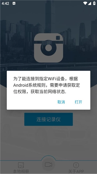 请依次打开手机的“设置-WiFi-选择和记录仪WiFi名字相同的WiFi连接”,连接成功后,再打开App。