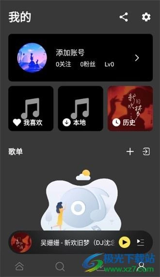 5、在我的页面里,既能看到自己的听歌歌单数据,又能看到喜欢过的歌曲以及历史听歌记录。