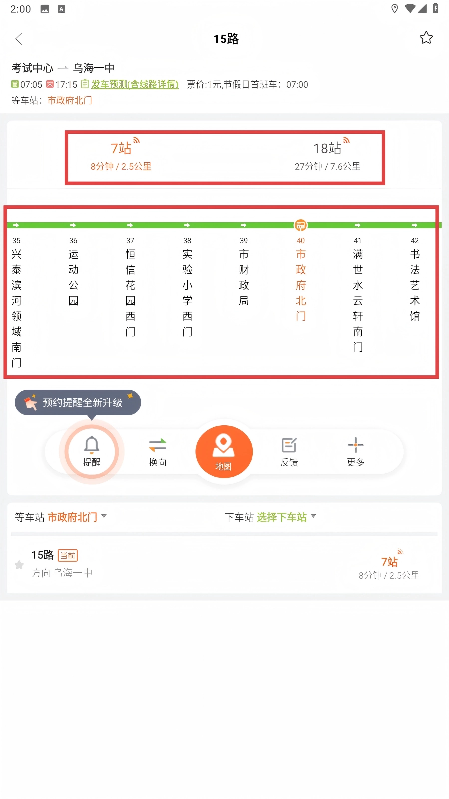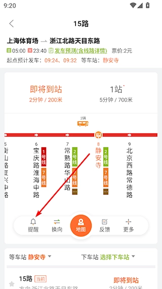 2. 实时公交站牌:能实时呈现公交的到站相关信息,涵盖车辆此刻所处位置、与站点的距离以及预估的到达时间,并且可以设定响铃提醒功能。