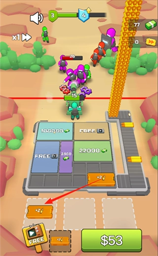2、将箱子与武器合并,增强你的基地塔炮部队,发射威力更大的子弹。