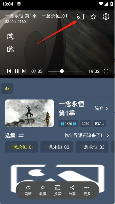 1. 找到想看的影视资源并点开,进入播放页面后,点击右上角的投屏按钮。