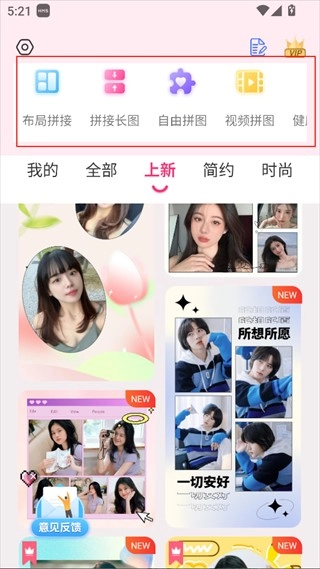 1. 开启拼图秀秀免费版App,既能够点击上方功能,也能直接挑选模板。