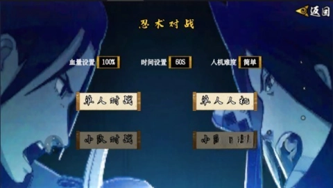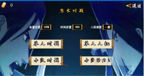 1、进入游戏后选择忍术对战,选择小队对战模式开始你的双人争霸。