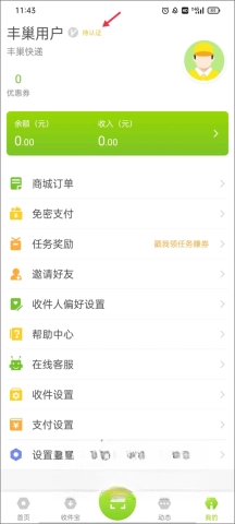 (1)打开软件并注册账号,切换到【我的】界面,在这里可看到商城订单、免密支付等功能选项,点击上方的“待认证”。