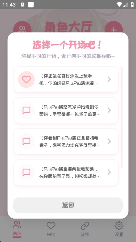 PiuPiu酱最新版,是一款超实用的AI虚拟陪伴应用。在这里,你能随心所欲地塑造专属虚拟角色形象,无论是外貌细节还是整体风格,皆可自由定制。应用还会记录你的喜好,据此为你打造更贴合心意的角色。丰富多样的玩法等你体验,从虚拟约会模拟,到各种新奇玩法的解锁,每一种都别具趣味。其二次元角色形象精致细腻,互动聊天玩法更是乐趣无穷,为用户带来顶级的虚拟聊天体验。自动化聊天互动玩法便捷高效,让你在闲暇时刻也能迅速开启互动。感兴趣的朋友,千万不要错过这款软件!