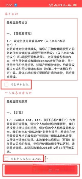 1、打开应用后,先阅读服务条款,勾选【同意……】,然后点击【下一步】。