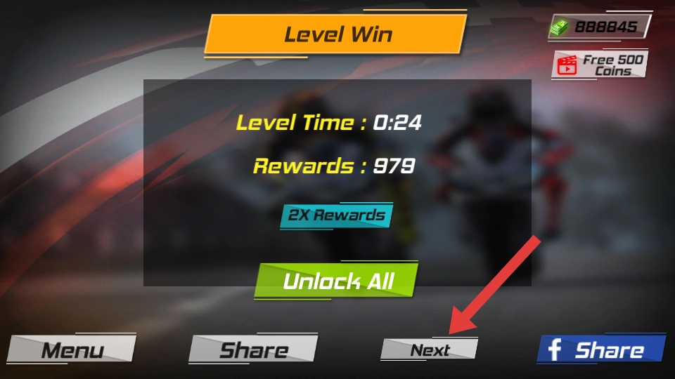 4、成功赢得关卡出现【Level-Win】提示后,查看获得的奖励,点击【Next】按钮,挑战下一个关卡。