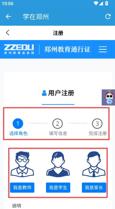 5、选择用户角色身份教师填写个人信息,完成注册。