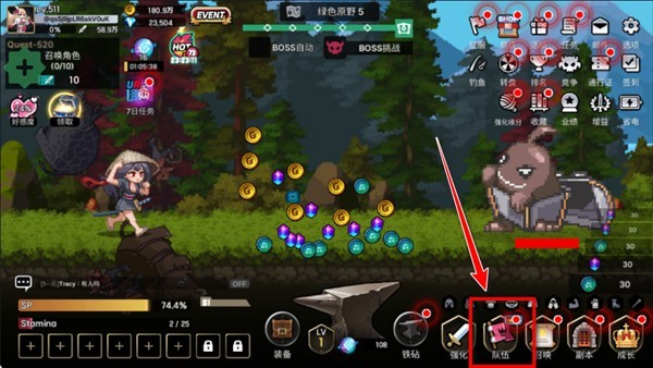 1、因为高等级的角色无法加入低等级角色担任队长的队伍中,所以需要先将队长位置转交给等级较高的角色,首先进入队伍界面。