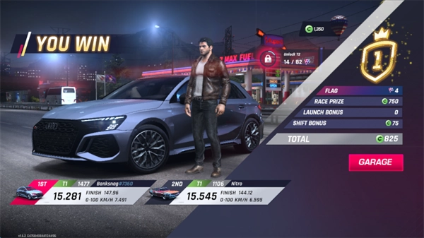 4、有氮气的帮助就可以很轻松的获胜了,可以获得部分资金,用于升级车辆或者购买更好车辆。
