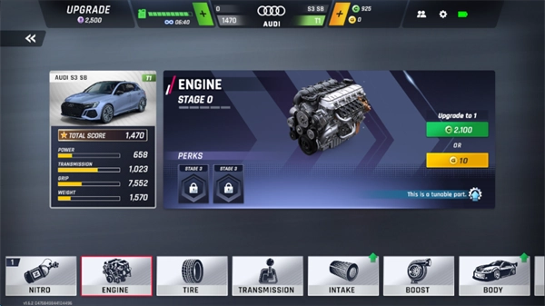 2、在游戏里,玩家可对所有赛车进行自定义改装,通过对轮胎贴膜、引擎、发动机等部位的改造,增强赛车实力,使其更契合自己的喜好。