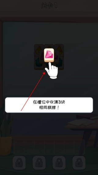 2、要实现消除,我们得在槽位里集齐三个相同的物品,这种游戏玩法和“羊了个羊”相近。
