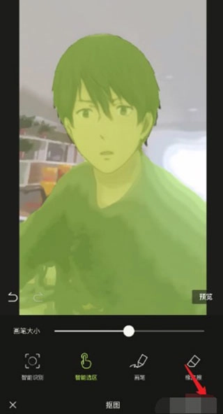 2、使用智能抠图,一键抠出人物,用“橡皮擦”擦除头部以内的部位。