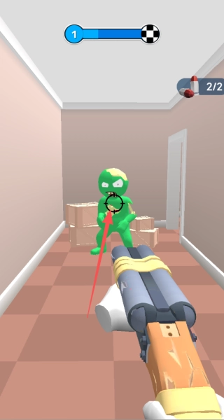 1. 只需点击屏幕瞄准丧尸,松开手指就能发射子弹,开启射击挑战。