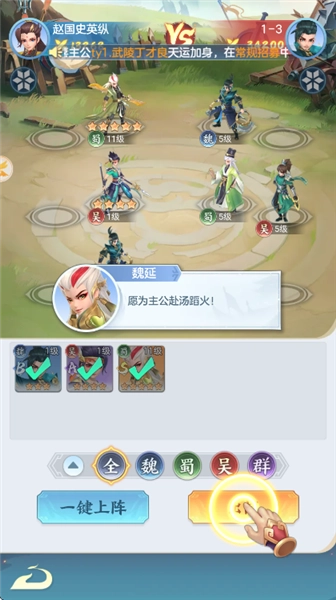 2. 武将培养:借助战斗与任务来获取资源,以此提升武将的等级与技能,开启特殊缘分组合,强化团队的战斗能力。