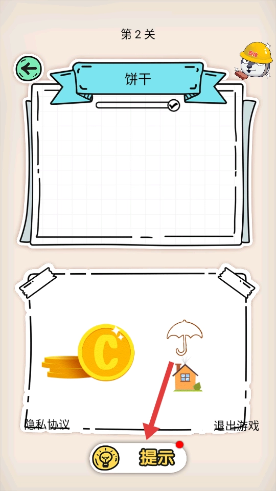 4、在闯关过程中,若有困难可点击【提示】按钮获取帮助,推进关卡进程。