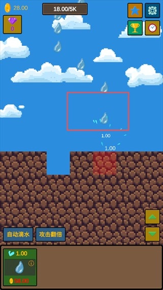 在初期,主要依靠点击操作,使水滴持续落下撞击石头,每次成功命中便能获取金币。前期金币积攒的速度相对较慢,不过还请您保持耐心,持续点击才是重中之重。