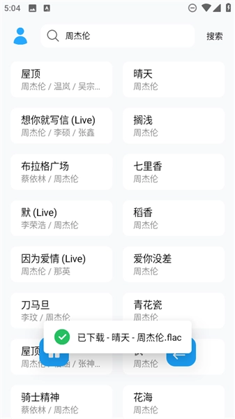 3、仅需输入准确的关键词,点击“搜索”按钮,界面便会呈现相应的音乐资源。