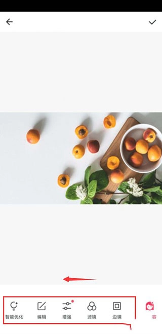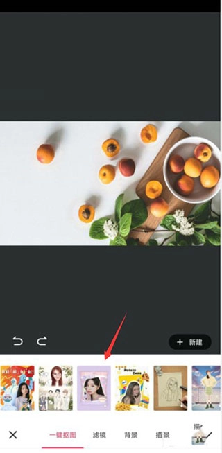 3、从相册导入一张照片后,下方往右边移动,如图。