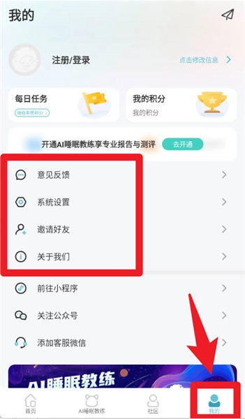 1. 登录小梦睡眠,点击【AI睡眠教练】