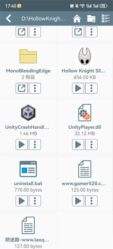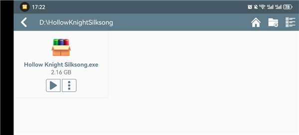 5、解压完成后返回即可看到游戏目录,选择"HollowKnightSilksong.exe"。