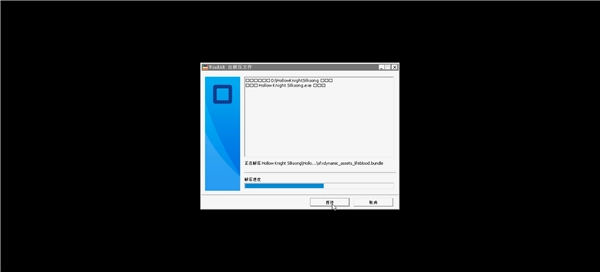 4、找到D盘选择“HollowKnightSilksong”文件里的"Hollow Knight Silksong.exe"解压,解压需较长时间,请耐心等待。