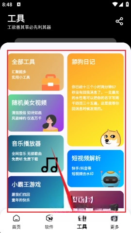 5、在【工具】板块内,用户能够发现高频使用的各类小工具。