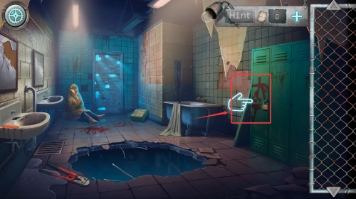 1、点击右侧储物柜寻找线索,注意柜门上的红色划痕提示。