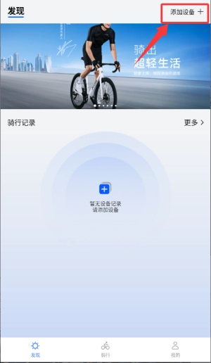 1、在发现界面选择添加设备,开始记录骑行数据。