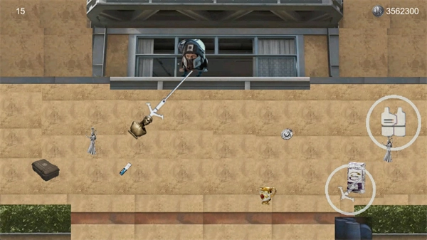 3、正式开始后,通过滑动屏幕能够控制角色移动,点击右侧的钩爪按钮则可发射钩爪抓取物资。