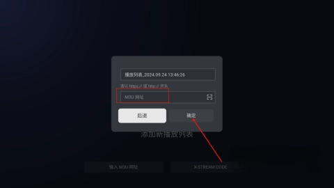 2、在IPTV播放器界面中,点击添加新播放列表的选项。