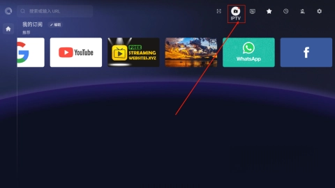 1、打开BrowseHere浏览器后,点击"IPTV"功能。